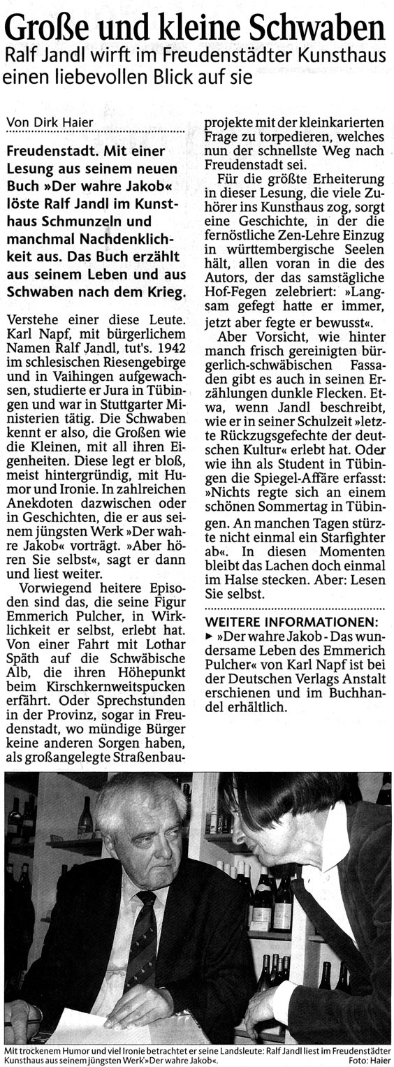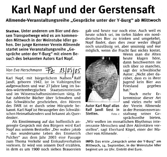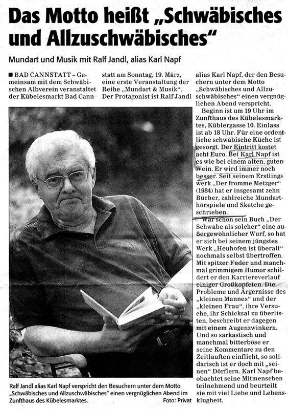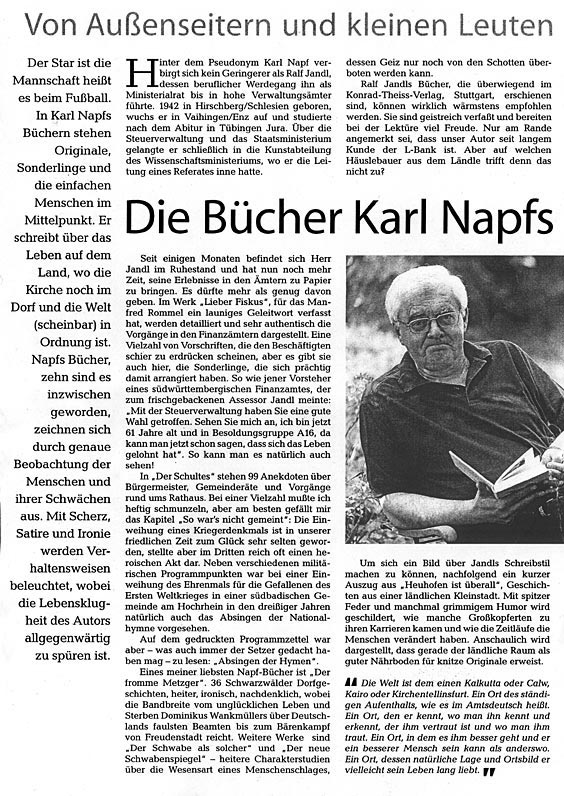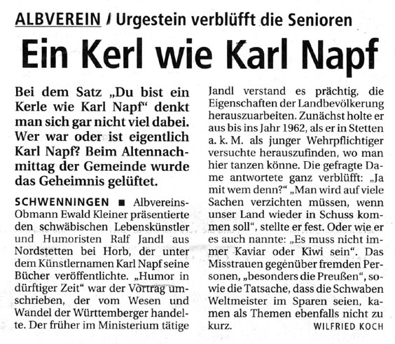 Sehen Sie hier eine kleine Auswahl von Presseartikeln über Karl Napf.